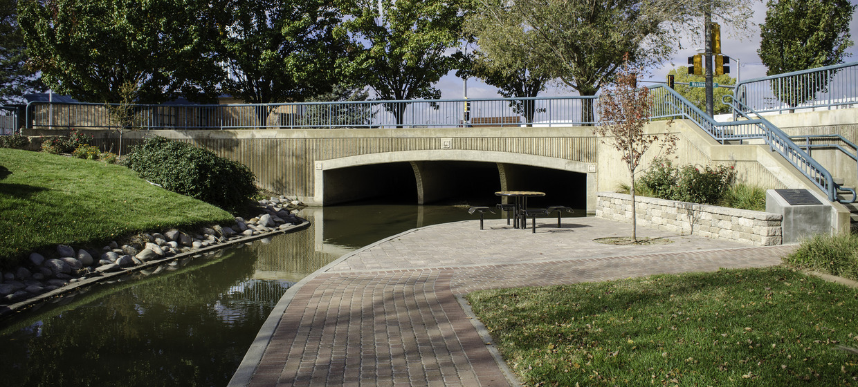 Rather than repair the underground structure, which would have required closing Avenue A for significant periods of time, BG engineers made plans to relocate the channel and make it open, instead of underground. Plans included the construction of an elevated twin-bridge with 12-foot sidewalks on Main Street and multiple reinforced concrete box bridges over the channel. Adding park amenities made the project eligible for KDOT funding. Overall, the project cost the City significantly less than replacing the original underground bridge structures.