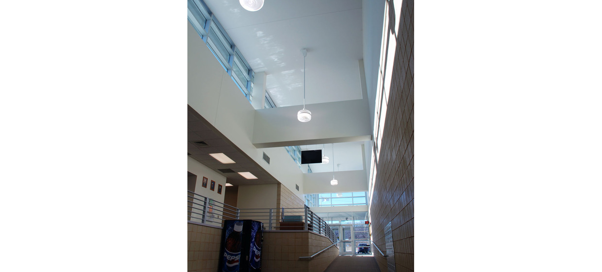 The Law Enforcement Center was designed to communicate the transparency of the law and importance of order. It features large expanses of glazing along a public entryway and a continuous ribbon of glass around the building. Themes of enclosure and firm justice, manifested by a masonry exterior, represent the iconic imagery of the jail building type.