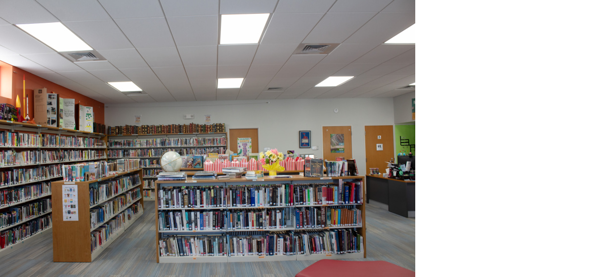 The library replaced an undersized, aging space located a block away. The new space replaced the previous dark, windowless building with an open and technologically connected space, flexible for future use as needs change. Adjacent spaces, able to be opened up into the main reading room, allow for use by community groups ranging from the quilting group to the latch-key program. Open exterior space provides room to both read a book and for kids to run.